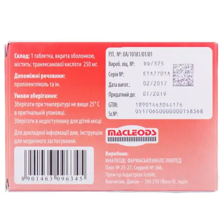 Идентифицированы 2 метаболита транексамовой кислоты: N-ацетилированное и дезаминированное производные. При нарушении функции почек существует риск кумуляции транексамовой кислоты.