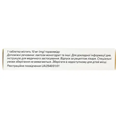 1 таблетка содержит торасемид 10 мг;