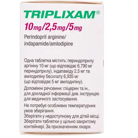 - Показания: Трипликсам показан для лечения артериальной гипертензии пациентам, которым необходимо лечение периндоприлом, индапамидом и амлодипином в дозах, имеющихся в фиксированной комбинации.