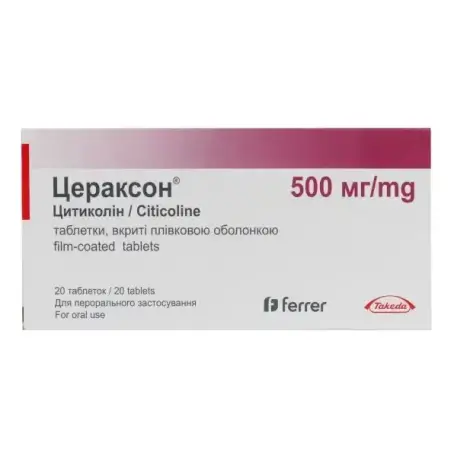| Фармакотерапевтична група. Психостимулятори, засоби, що застосовуються при синдромі дефіциту уваги та гіперактивності (СДУГ), ноотропні засоби. Код АТХ N06В Х06. Фармакологічні властивості. Фармакодинаміка. Цитиколін стимулює біосинтез структурних фосфоліпідів мембран нейронів, що підтверджено даними магнітно-резонансної спектроскопії. Завдяки такому механізму дії цитиколін проявляє функціонування таких мембранних механізмів як робота іонообмінних насосів та рецепторів, модуляція яких необхідна для нормального проведення нервових імпульсів. Завдяки стабілізуючій дії на мембрану нейронів цитиколін виявляє протинабрякові властивості, які сприяють реабсорбції набряку мозку. Експериментальні дослідження показали, що цитиколін інгібує активацію деяких фосфоліпаз (А1, А2, С та D), зменшуючи утворення вільних радикалів, запобігає руйнуванню мембранних систем і зберігає антиоксидантні захисні системи, такі як глутатіон. Цитиколін зберігає запас енергії нейронів, інгібує апоптоз та стимулює синтез ацетилхоліну. Експериментально доведено, що цитиколін також проявляє профілактичну нейропротекторну дію при фокальній ішемії головного мозку. Клінічні дослідження показали, що цитиколін достовірно збільшує показники функціонального одужання у пацієнтів із гострим ішемічним порушенням мозкового кровообігу, що співпадає з уповільненням росту ішемічного ураження головного мозку за даними нейровізуалізації. У пацієнтів із черепно-мозковою травмою цитиколін прискорює відновлення і зменшує тривалість та інтенсивність посттравматичного синдрому. Цитиколін поліпшує рівень уваги та свідомості, когнітивні та неврологічні розлади, пов’язані з ішемією головного мозку, сприяє зменшенню проявів амнезії. Фармакокінетика. Цитиколін добре абсорбується при пероральному введенні. Після введення препарату спостерігається значне підвищення рівня холінів у плазмі крові. При пероральному застосуванні препарат практично повністю всмоктується. Дослідження показали, що біодоступність при пероральному та внутрішньовенному шляхах введення практично однакові. Препарат метаболізується у кишечнику та печінці з утворенням холіну та цитидину. Після введення цитиколін широко розподіляється у структурах головного мозку зі швидким включенням фракції холіну в структурні фосфоліпіди та фракції цитидину у цитидинові нуклеотиди і нуклеїнові кислоти. У головного мозку цитиколін вбудовується у клітинні, цитоплазматичні та мітохондріальні мембрани, приймаючи участь у побудові фракції фосфоліпідів. Лише незначна кількість дози виявляється у сечі і фекаліях (менше 3 %). Приблизно 12 % дози виводиться через СО 2 , що видихається. Під час виведення препарату з сечею виділяють дві фази: перша фаза – протягом 36 годин, у якій швидкість виведення зменшується швидко, і друга фаза – в якій швидкість виведення зменшується набагато повільніше. Така ж сама фазність спостерігається при виведенні через дихальні шляхи. Швидкість виведення СО 2 зменшується швидко приблизно протягом 15 годин, потім – знижується набагато повільніше. |