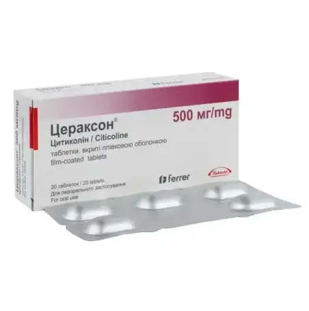 | Склад: діюча речовина: citicoline; 1 таблетка містить 522,5 мг цитиколіну натрію, що еквівалентно 500 мг цитиколіну; допоміжні речовини: тальк; магнію стеарат; кремнію діоксид колоїдний безводний; натрію кроскармелоза; олія рицинова гідрогенізована; целюлоза мікрокристалічна; оболонка: тальк; магнію стеарат; титану діоксид (Е 171); поліетиленгліколь 6000; метакрилатний сополімер (тип А). |