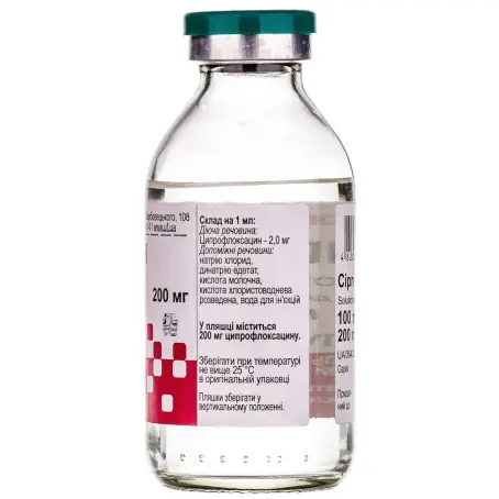 1 мл раствора содержит гидрохлорид ципрофлоксацина 2,220 мг (в пересчете на ципрофлоксацин 2 мг);