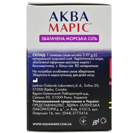 Аква Маріс збагачена морська сіль саше, 30 шт. можна купити в наших аптеках зараз тут: Верхогляда 14, Новопечерські Липки, 6 лікарня, Вишневое, Европейская