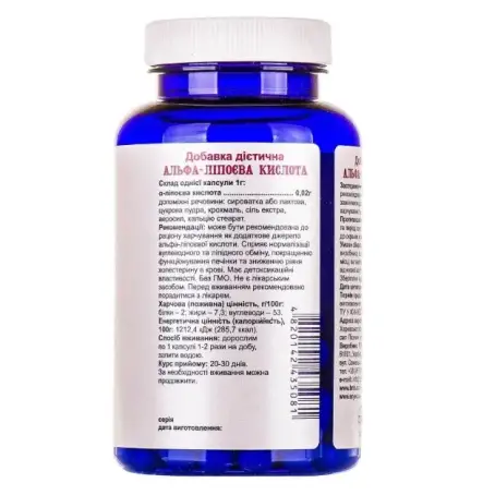 1 капсула 1 г (g): альфаліпоєва кислота - 0.02 г (g).