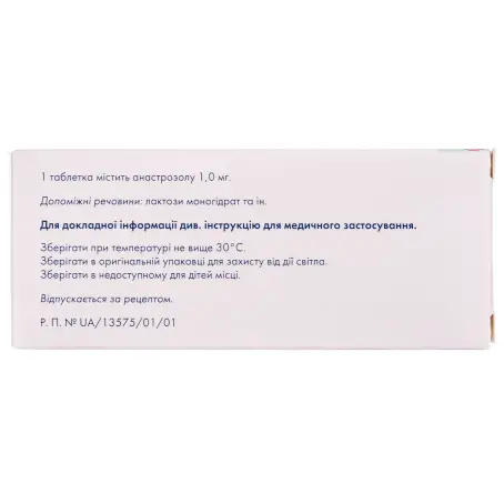 Склад: 1 таблетка містить 1,0 мг анастрозолу (Anastrozolum)