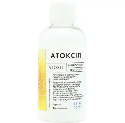 Особливості застосуванняУвага! вживання сухого порошку всередину заборонено !!!.Під час комплексної терапії, при поєднанні з іншими препаратами Атоксіл слід приймати за 1 год до прийому інших лікарських засобів, які застосовуються per os, в зв'язку з їх можливістю абсорбцію і, як результат - зниження ефективності прийнятих у поєднанні препаратів.