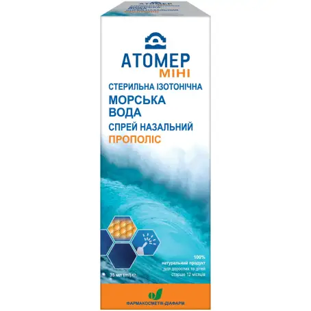 Прополіс Atomer mini стерильний з морською водою призначений для очищення, зволоження та зменшення набряклості в носовій порожнині. Він видаляє слиз, що скупчився, зволожує слизову оболонку носа і робить дихання вільним.