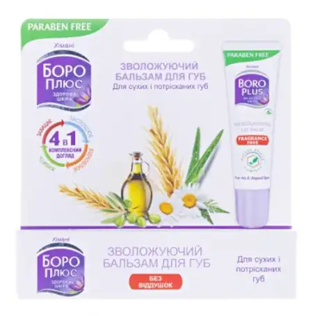 Рекомендації щодо застосуванняБоро плюс бальзам зволожуючий для губ створений для тих, кому недостатньо базового догляду за губами. Комплексний догляд 4 в 1 полягає в живленні, відновленні, зняття дискомфорту і захисту. Крім того, в бальзамі немає ароматів, і він складається з натуральних олій і лікарських трав, тому він дбайливо піклується про шкіру ваших губ.