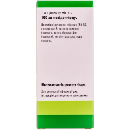 Основні фізико-хімічні властивості: розчин темно-коричневого кольору із запахом йоду, не містить зважених та осаджених часток.