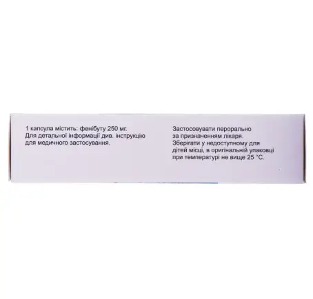 80−95% фенібуту метаболізується у печінці, метаболіти фармакологічно неактивні.