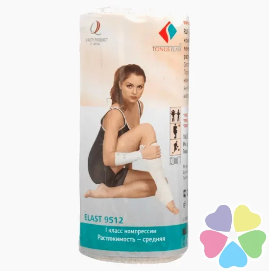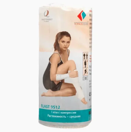 Опис Призначений для профілактики та лікування при варикозному розширенні вен, а також вивихів, розтягувань, набряків та інших травматичних ускладнень. Склад бинт середньої розтяжності: бавовна - 75%, латекс - 17%, поліестер - 8%;