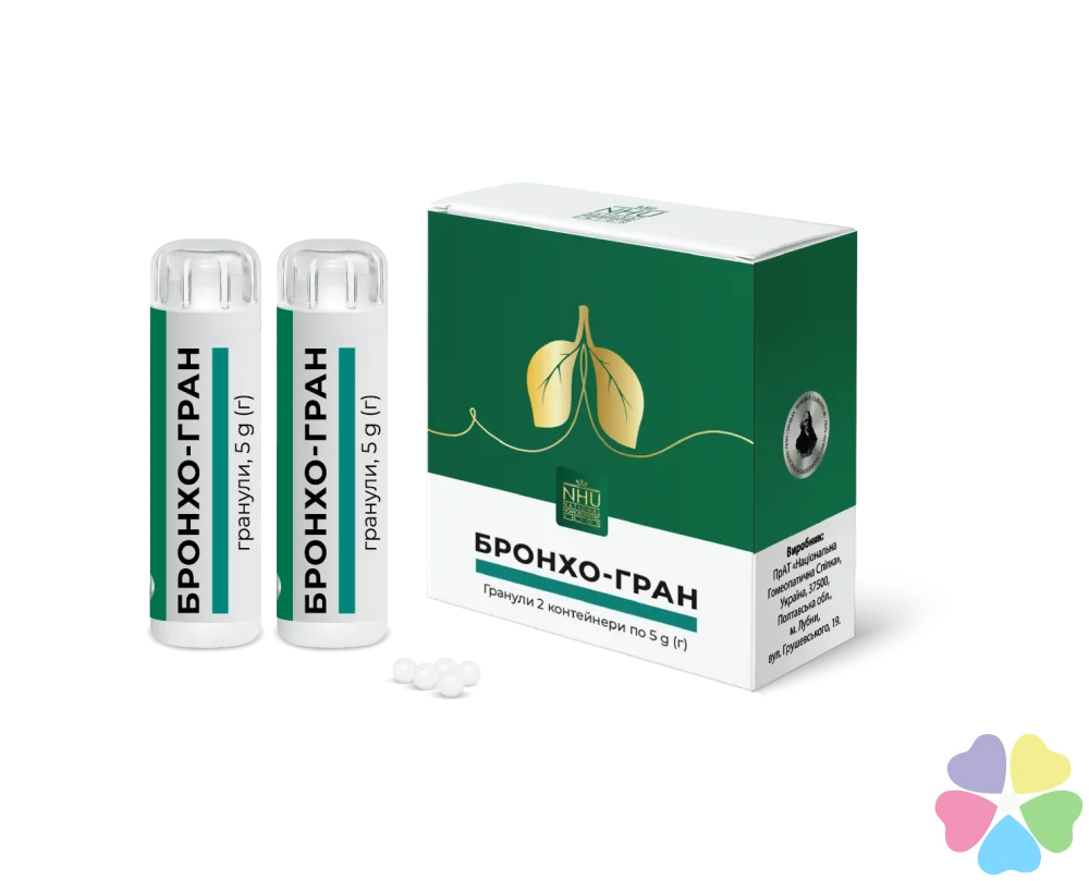 БРОНХО-ГРАН — комплексний препарат від кашлю в разі ларингіту, трахеїту та бронхіту. Полегшує дихання, стимулює відходження мокротиння і зменшує запалення слизової дихальних шляхів. Підходить для лікування як гострого, так і хронічного кашлю.