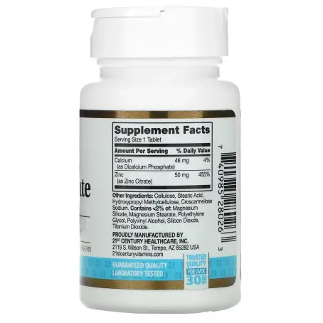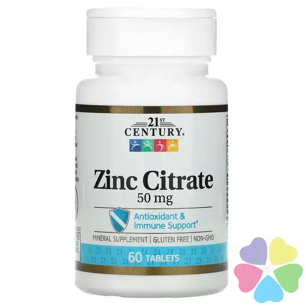 ЦИНКУ ЦИТРАТ 50 мг 21st CENTURY-мінеральна добавка до їжі з вираженою антиоксидантною, протизапальною та імуномодулюючою дією.