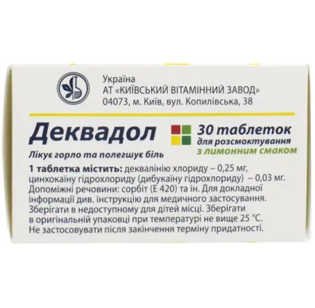 ПоказанняМісцеве лікування гострих запальних захворювань ротової порожнини та горла: гінгівіт, виразковий та афтозний стоматит, тонзиліт, ларингіт та фарингіт. Деквадол також рекомендується застосовувати при наявності неприємного запаху з рота.