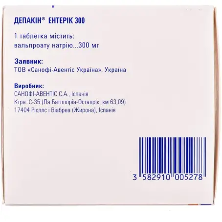 Лікарський засіб: ДЕПАКІН ЕНТЕРІК 300 (DEPAKINE ENTERIC 300)