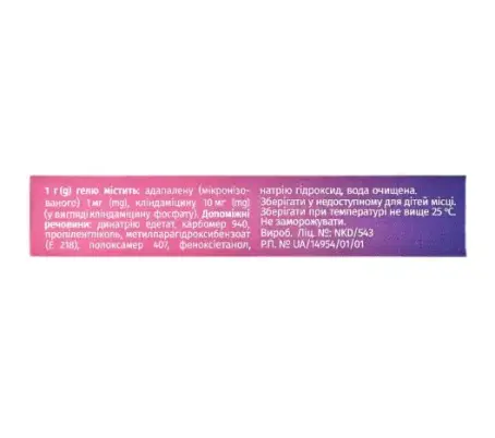 1 г гелю містить адапалену (мікронізованого) 1 мг, кліндаміцину (у вигляді кліндаміцину фосфату) 10 мг;