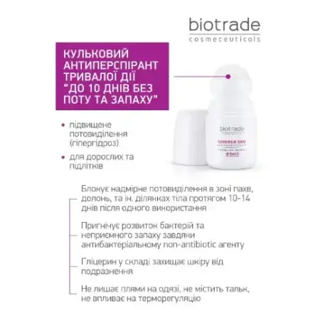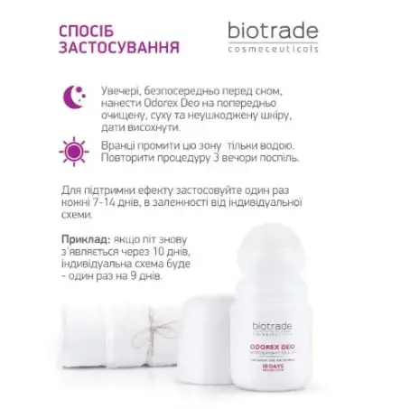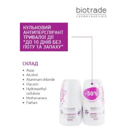 Biotrade Odorex Deo забезпечує надійний захист і комфорт, що робить його відмінним вибором для тих, хто цінує тривалий результат і ефективність у догляді за тілом.