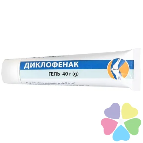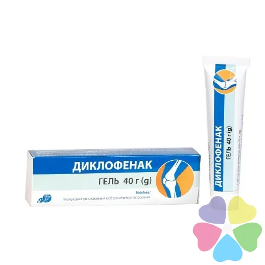 Диклофенак — нестероїдний протизапальний засіб для зовнішнього застосування групи похідних фенілоцтової кислоти. Препарат має виражені місцеві протиревматичні, знеболювальні та протизапальні властивості, що зумовлено пригніченням синтезу простагландинів — медіаторів болю та запалення.