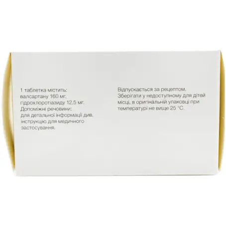 або 160 мг валсартану і 12,5 мг гідрохлоротіазиду (Діокор 160);