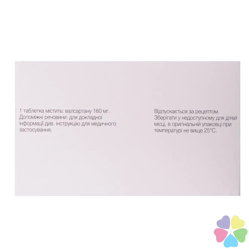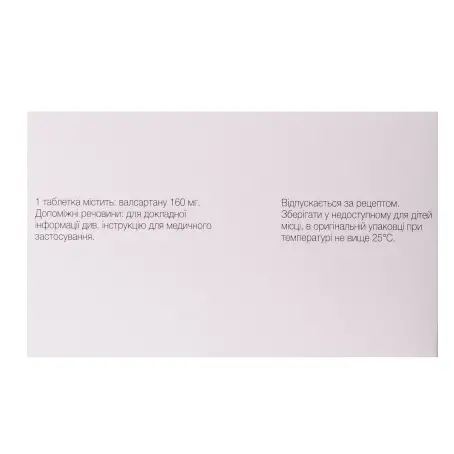 1таблетка, вкрита плівковою оболонкою, містить валсартану 80 мг або 160 мг;