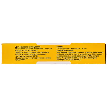 Основний активний інгредієнт у складі крему - ібупрофен (Ibuprofenum), який міститься у концентрації 50 мг на 1 г крему. Ібупрофен є НПЗП і відомий своєю здатністю зменшувати біль та запалення. Він діє місцево, допомагаючи знизити біль та запалення у суглобах і м'язах.