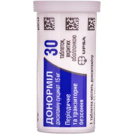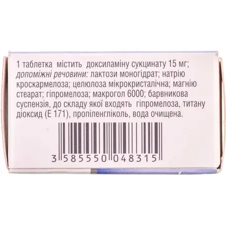 1 таблетка містить доксиламіну сукцинату 15 мг;