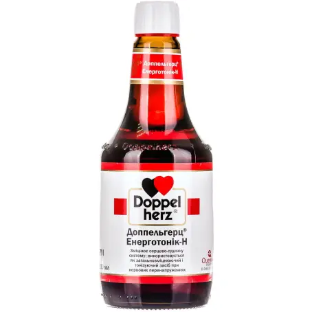 Допельгерц Енерготонік-Н 500 мл - це дієтична добавка від німецької компанії, розроблена для підвищення рівня енергії та загального самопочуття. Цей продукт містить вітаміни, мінерали та інші корисні складові, які допомагають підтримувати життєвий тонус і бодрість. Він може бути використаний для збереження енергії і покращення фізичного стану організму.