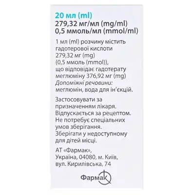 ДОТАВІСТ 279,32 мг/мл ( 0,5 ммоль/мл) 20 мл р-н для ін. фл.