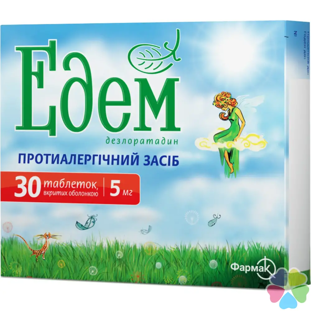 У пацієнтів з алергічним ринітом Едем® ефективно усував такі симптоми, як чхання, виділення з носа та свербіж, а також подразнення очей, сльозотеча та почервоніння, свербіж піднебіння. Препарат ефективно контролював симптоми упродовж 24 годин.