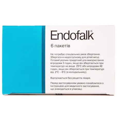 Для повного очищення кишечнику необхідно випити до 3, максимум до 4 літрів розчину Ендофальку. Один пакет відповідає ½ літра розчину.