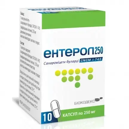 Фармакологічні властивості.Фармакодинаміка.Ентерол 250 нормалізує мікрофлору кишечника й має виражену етіопатогенетичну антидіарейну дію. Під час проходження через шлунково-кишковий тракт