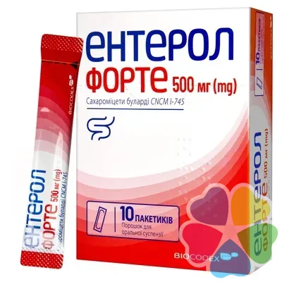 1 пакетик містить Сахароміцети буларді CNCM I-745 500 мг (що відповідає 565 мг ліофілізованих клітин);