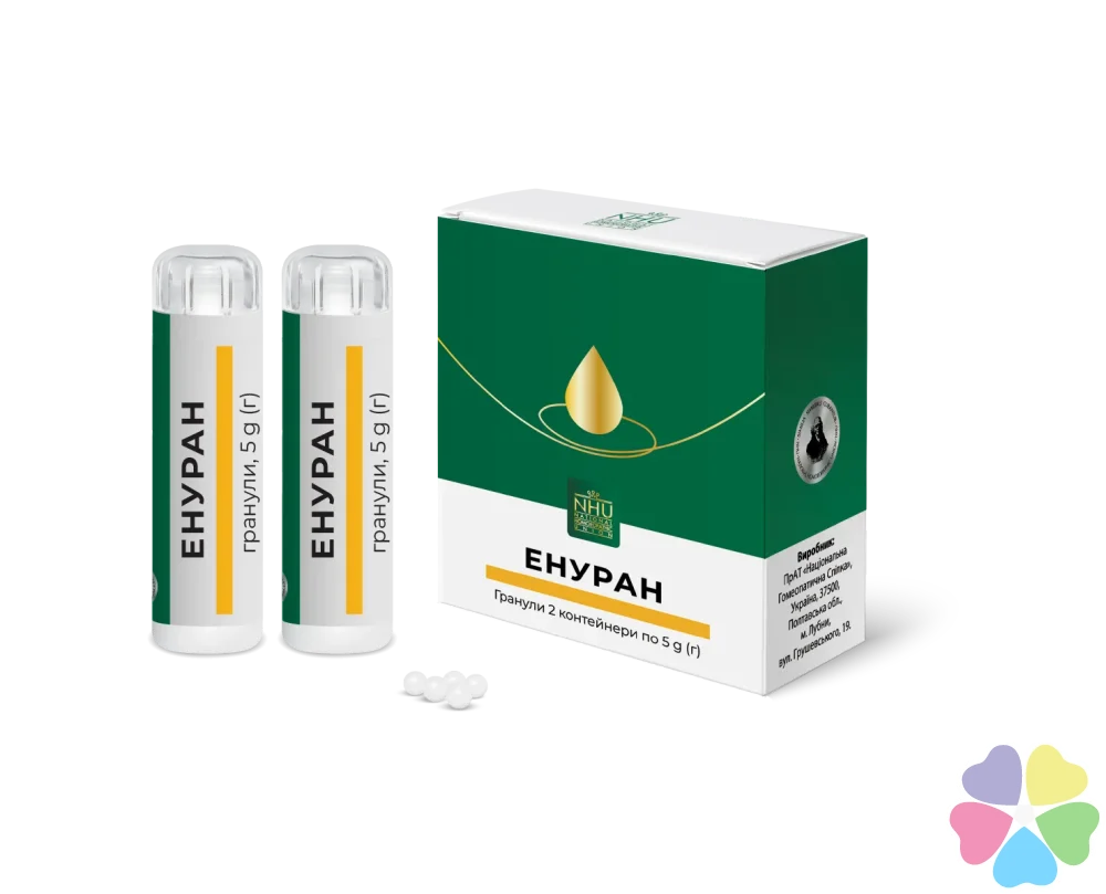 ЕНУРАН — комплексний препарат при енурезі у дітей і дорослих, створений на основі натуральних компонентів. Допомагає при первинному нічному енурезі, синдромі подразненого сечового міхура, а також при спазмах і слабкості м'язів сечового міхура в літньому віці.