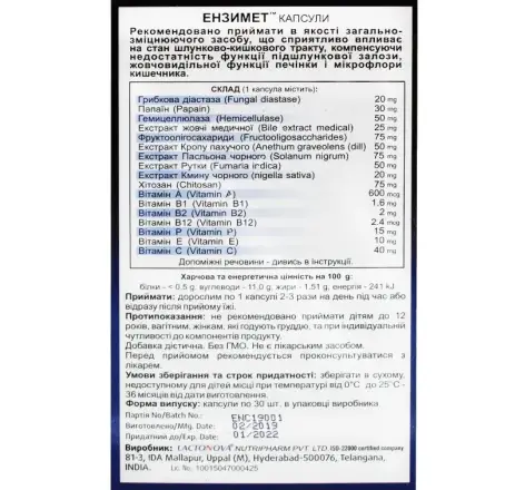 На відміну від панкреатичних ферментів, Ензімет активний в середовищі з більш широким діапазоном pH, тому застосовується як при гіпоацидних, так і при гіперацидних станах.