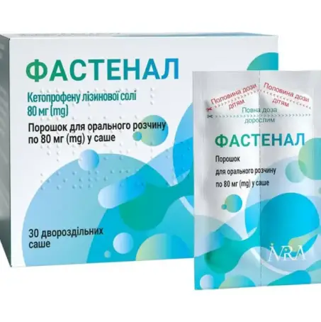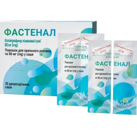 1 двороздільне саше містить кетопрофену лізинової солі 80 мг, що відповідає 50 мг кетопрофену;