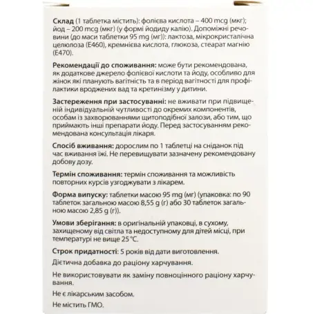 Якщо Ви плануєте вагітність, то до свого раціону харчування потрібно включити фолієву кислоту та йод — бажано не пізніше ніж за 4 тижні до початку запланованої вагітності, та продовжувати як мінімум до 12 тижнів вагітності.