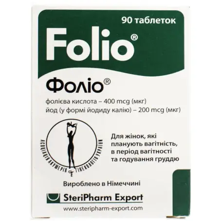 Фоліо - оригінальна комбінація фолієвої кислоти і йоду, німецької компанії «Стеріфарм», спеціально розроблена для жінок, які планують вагітність, вагітних і годуючих груддю, згідно рекомендацій Всесвітньої організації охорони здоров’я.