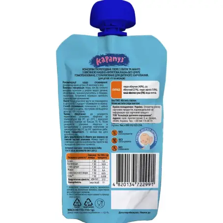 Важлива інформація: перш ніж ви почнете вводити прикорм до раціону вашої дитини, обов'язково проконсультуйтеся з лікарем-педіатром. Безумовна перевага належить грудному вигодовуванню. Якщо упаковування здуте чи пошкоджене - продукт вживати не можна.
