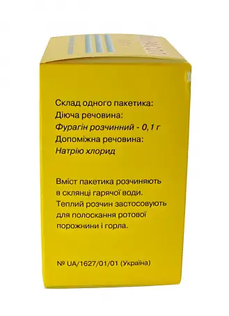 1 пакетик містить фурагіну розчинного 0,1 г;