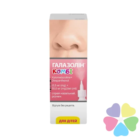 ГАЛАЗОЛІН® КОМБІ (0,5 мг + 50 мг)/мл (з одним натисненням вивільнюється 0,05 мг ксилометазоліну гідрохлориду та 5,0 мг декспантенолу) призначають дітям віком від 2 років.