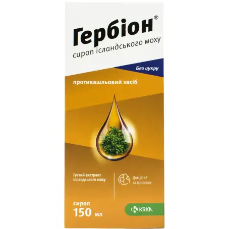 Фармакологічні властивостіФармакодинаміка.Препарат Гербіон® сироп ісландського моху містить густий екстракт ісландського моху, який чинить протикашльову, імуностимулюючу, антибактеріальну та протизапальну дії. Основними компонентами екстракту ісландського моху є слиз у формі розчинних у воді полісахаридів, в основному ліхеніну та ізоліхеніну, а також гіркі лишайникові кислоти. Полісахариди чинять обволікаючу дію на слизові оболонки верхніх дихальних шляхів, утворюючи захисний шар, який чинить заспокійливий вплив на поверхню слизових оболонок, завдяки чому зменшується кашльовий рефлекс, спричинений зовнішніми подразниками, та пом'якшується сухий та подразливий кашель. Слиз також з’єднується з водою на поверхні слизової оболонки і таким чином чинить місцеву обволікаючу дію на подразнені та сухі слизові оболонки порожнини рота та горла.