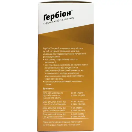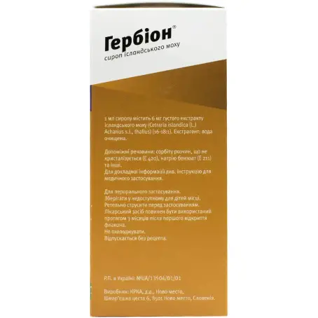 Препарат Гербіон® сироп ісландського моху містить сорбітол. Пацієнтам із рідкісною спадковою непереносимістю фруктози не слід приймати цей препарат.