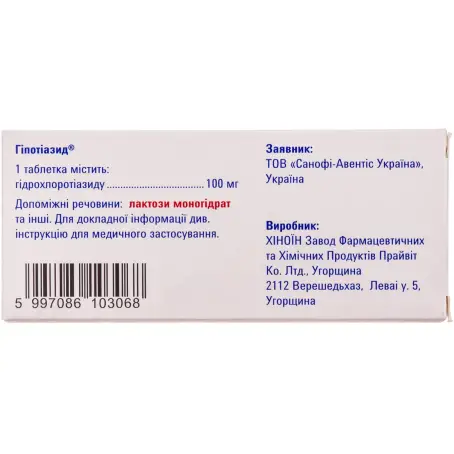 Допоміжні речовини.У випадку непереносимості лактози слід враховувати, що Гіпотіазид® у таблетках по 25 мг містить 63 мг лактози моногідрату, а Гіпотіазид® у таблетках по 100 мг містить 39 мг лактози моногідрату.