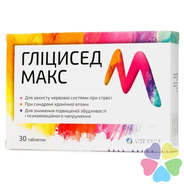 Завдяки оптимальному складу Гліциседу Макс позитивно впливає на функціонування нервової системи, сприяє підвищенню стресостійкості та попередження патологічних наслідків стресу.