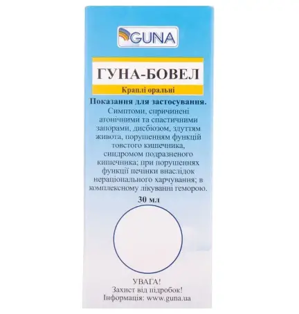 При запорах і колітах рекомендується поєднувати прийом препаратів Гуна-Бовел та Еубіофлор. При запорах психосоматичного генезу рекомендується поєднувати прийом Гуна-Бовел з Гуна-Протистрес.