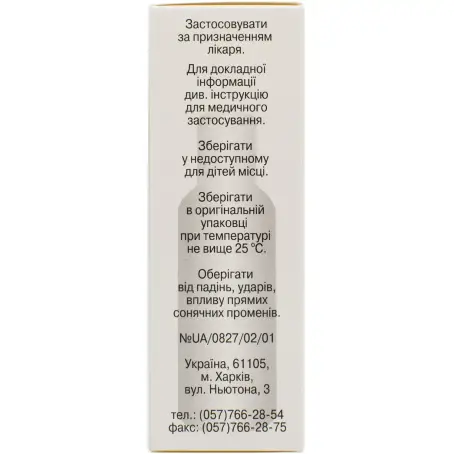 допоміжні речовини: етанол 96%, цукор, гліцерин, полісорбат 80, вода очищена, азот - тиск до 0,6 МПа.