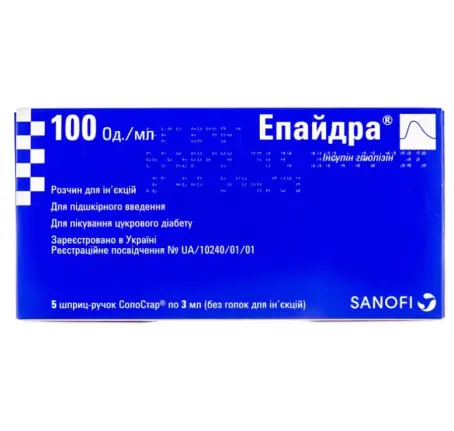 Препарат Епайдра® у попередньо наповненій шприц-ручці СолоСтар® можна використовувати лише для підшкірних ін'єкцій. Якщо необхідне введення препарату за допомогою шприца, внутрішньовенної ін'єкції або інфузійного насоса, слід використовувати флакон. Перед використанням шприц-ручки СолоСтар® слід уважно прочитати інструкцію із застосування. Шприц-ручку СолоСтар® потрібно використовувати відповідно до рекомендацій, що містяться у цій інструкції (див. розділ «Спосіб застосування та дози»).