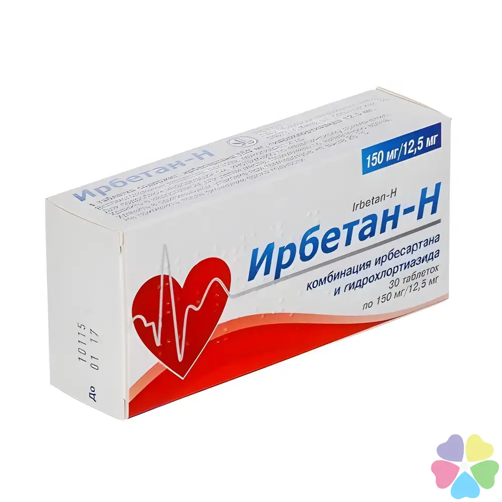 Ирбетан-Н 150 мг/12.5 мг содержит в качестве активных веществ гидрохлортиазид и ирбесартан. Таблетки Ирбетан-Н относятся к комбинированным ингибиторам 2-ангиотензина. Соединение антагониста с тиазидным диуретиком позволяет оказывать препарату дополнительный антигипертензивный эффект, при котором артериальное давление снижается значительнее, чем при использовании любой составляющей по отдельности.