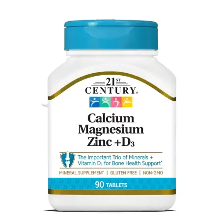 Кальцій, Магній, Цинк + D3 21st Century — вітамінно-мінеральний комплекс, який містить 3 базових мінерали та вітамін, які взаємопосилюють дію один одного.