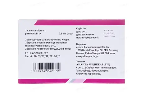 1 капсула містить раміприлу 2,5 мг.